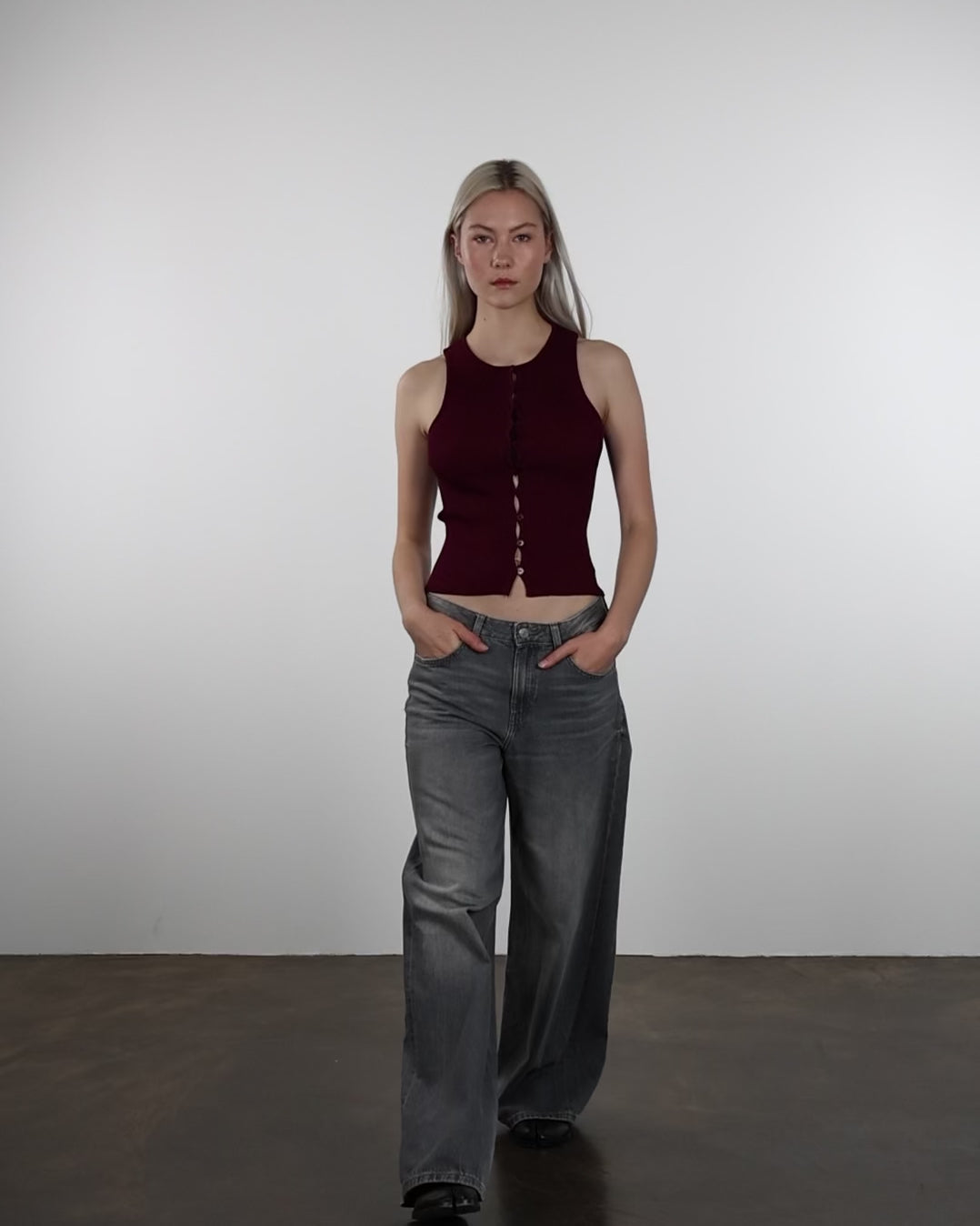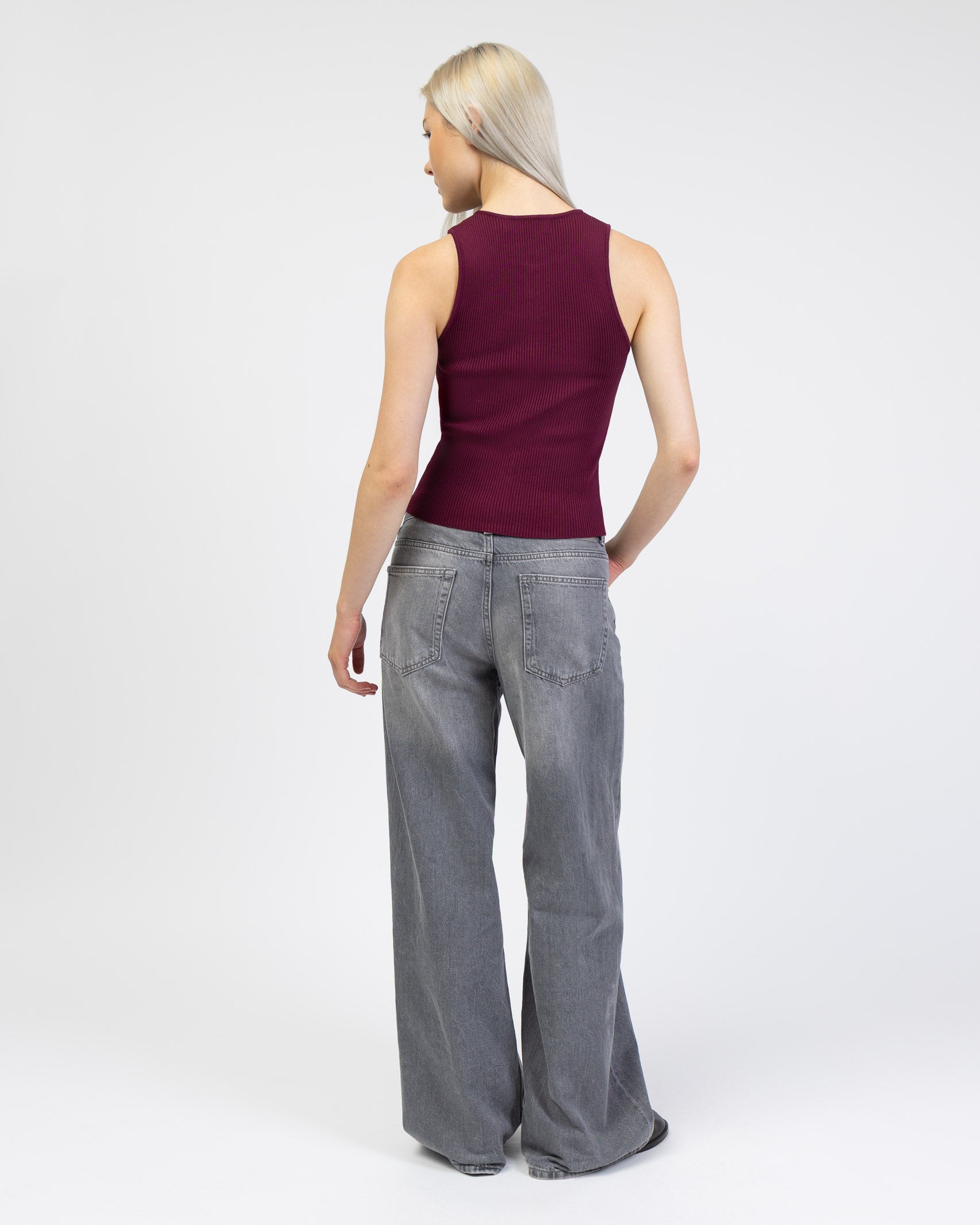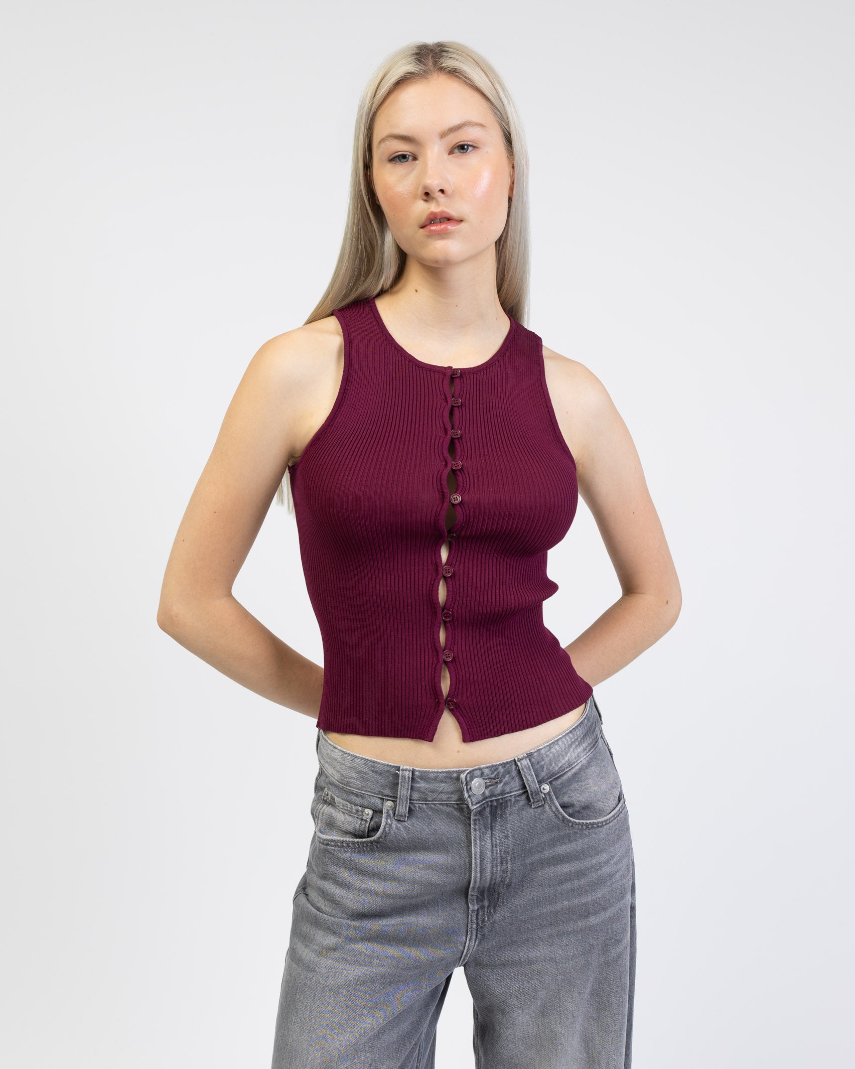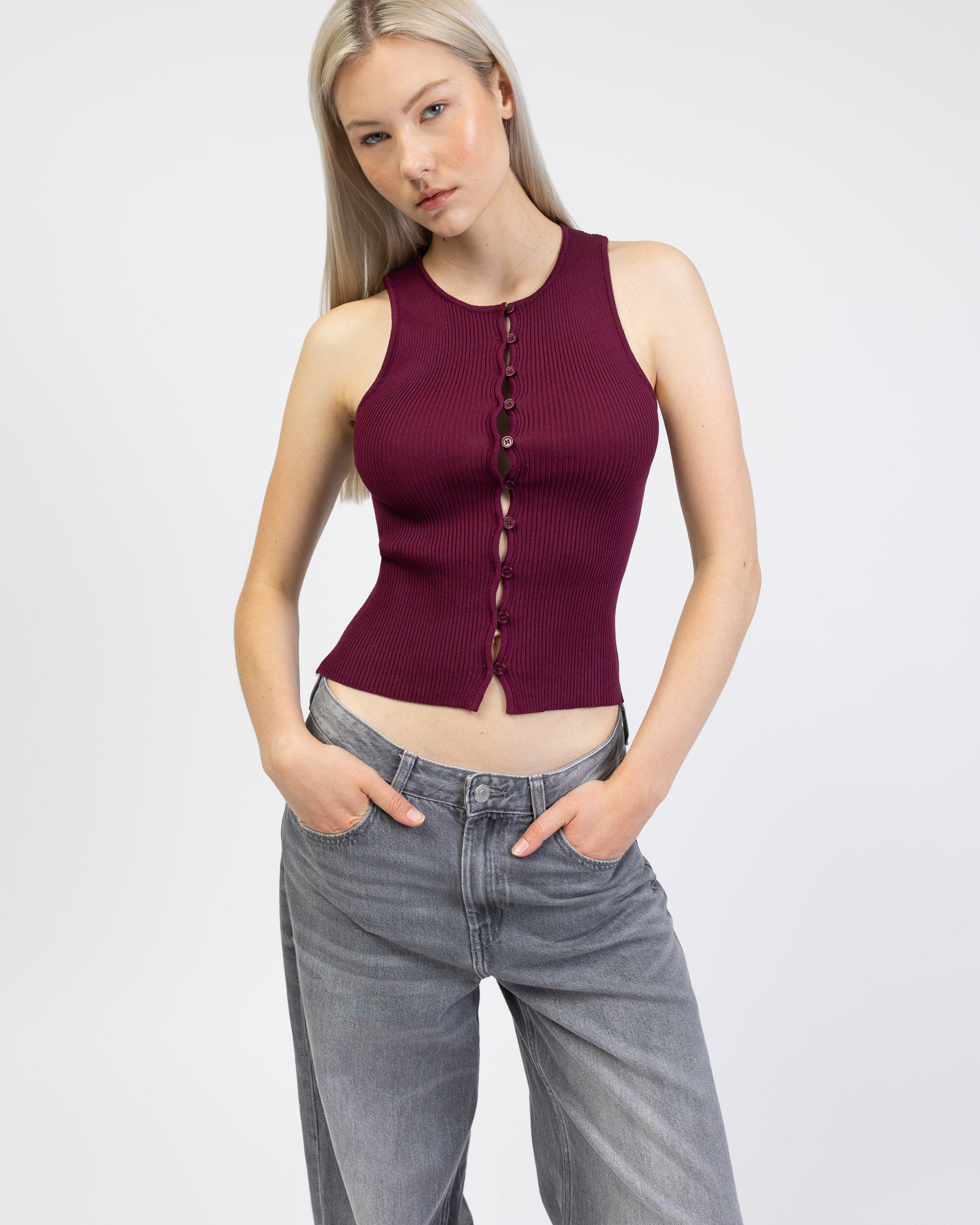 - Geripptes Top mit durchgängiger Knopfleiste und Rundhalsausschnitt