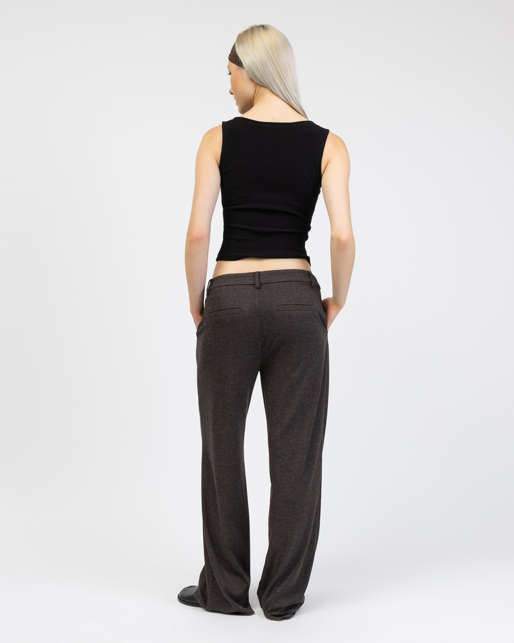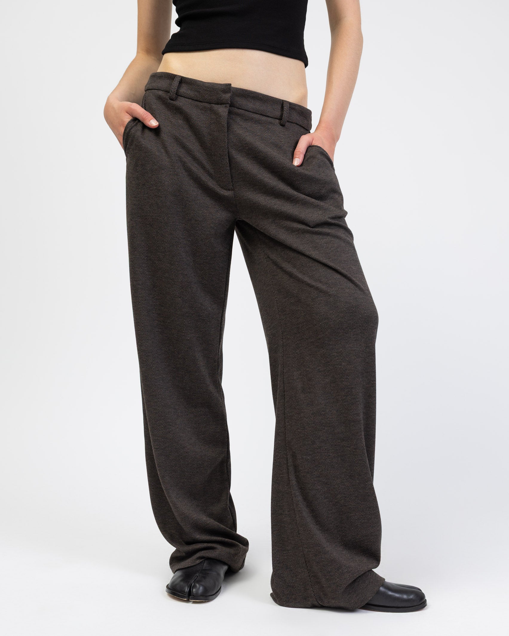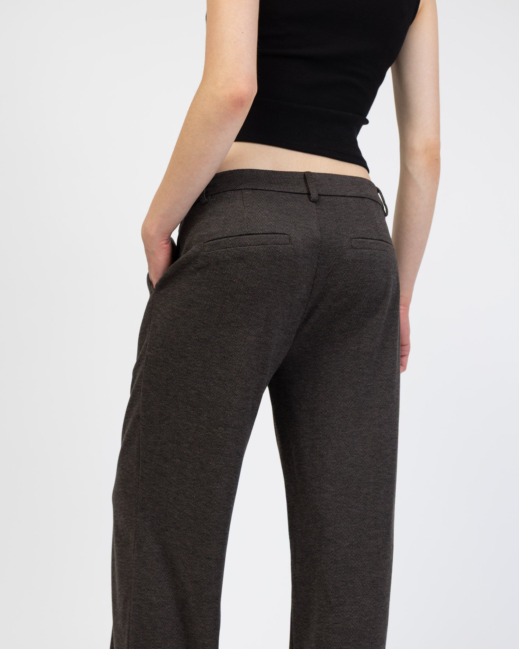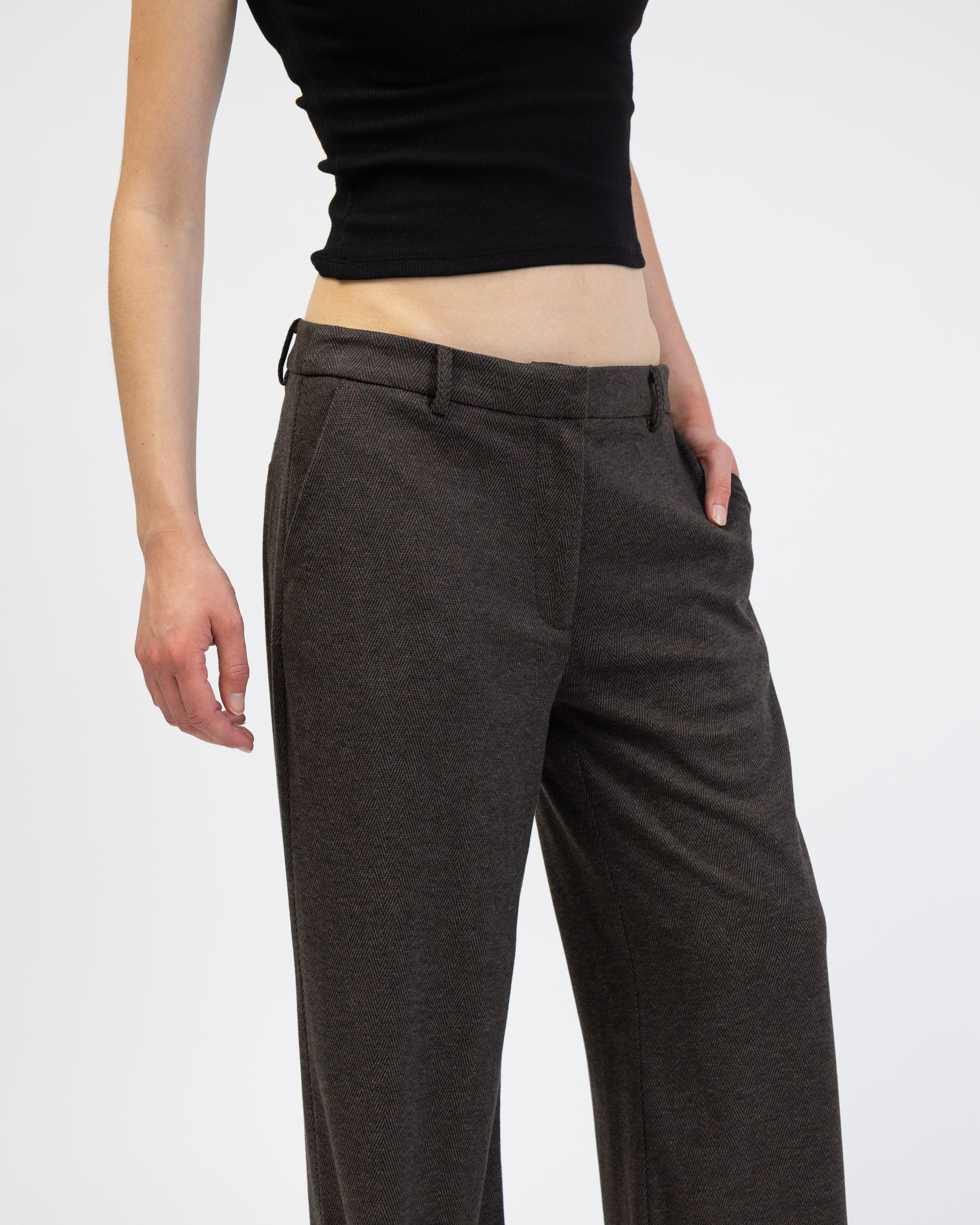- klassische Hose mit geradem Bein und Fischgrätmuster