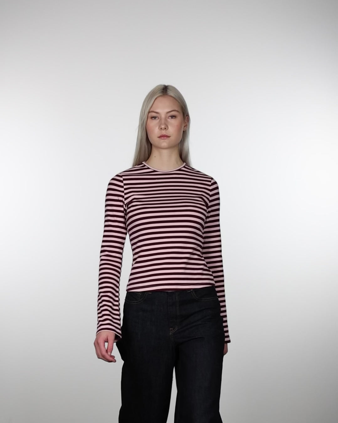 Gestreiftes Langarmshirt mit Trompetenärmeln