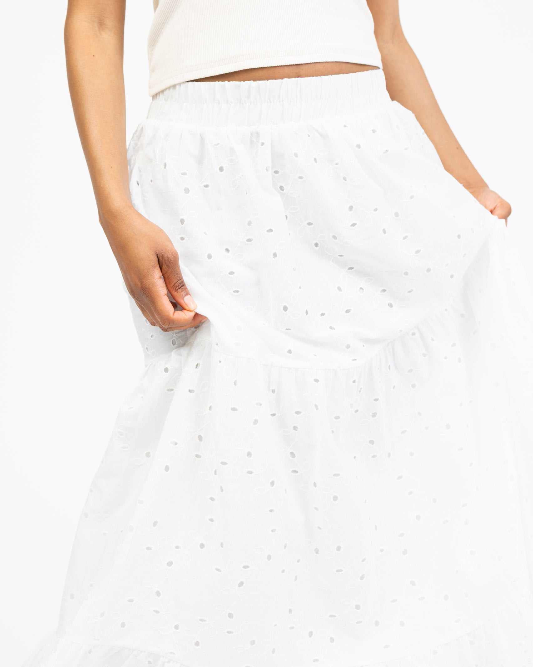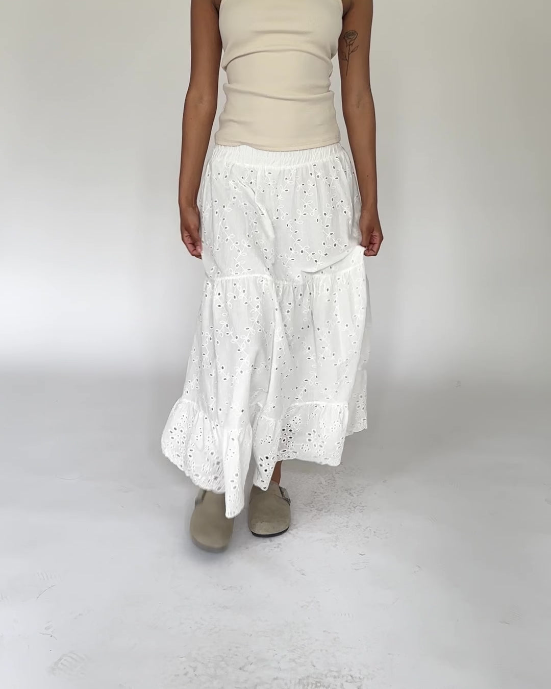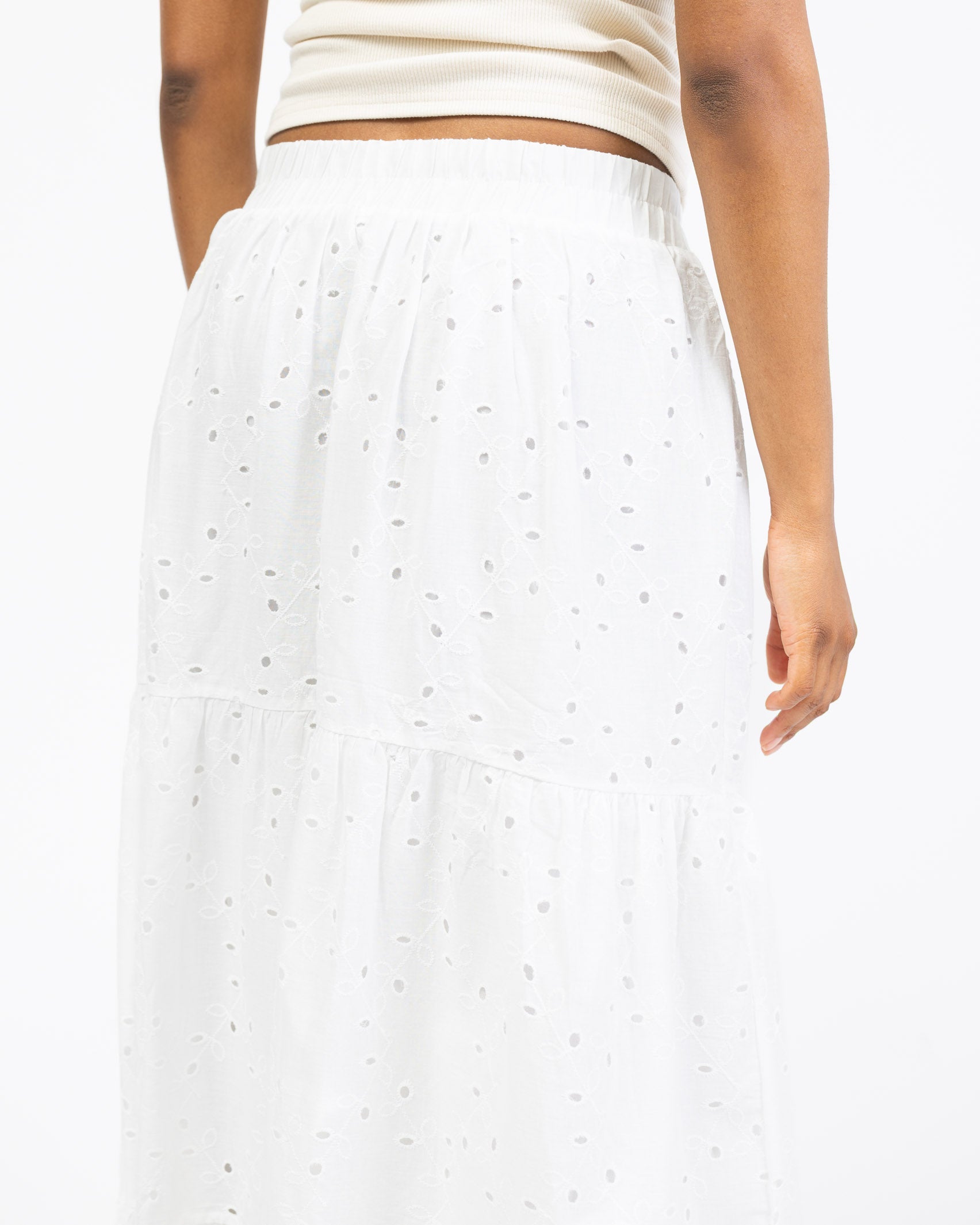- Fließender gestufter Maxirock mit Lochspitze aus Baumwolle