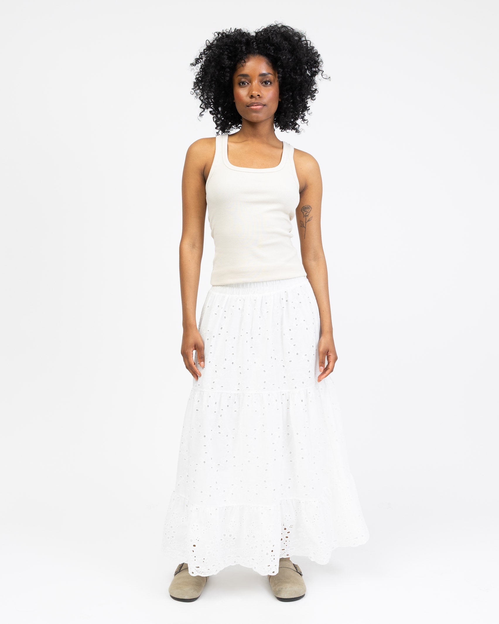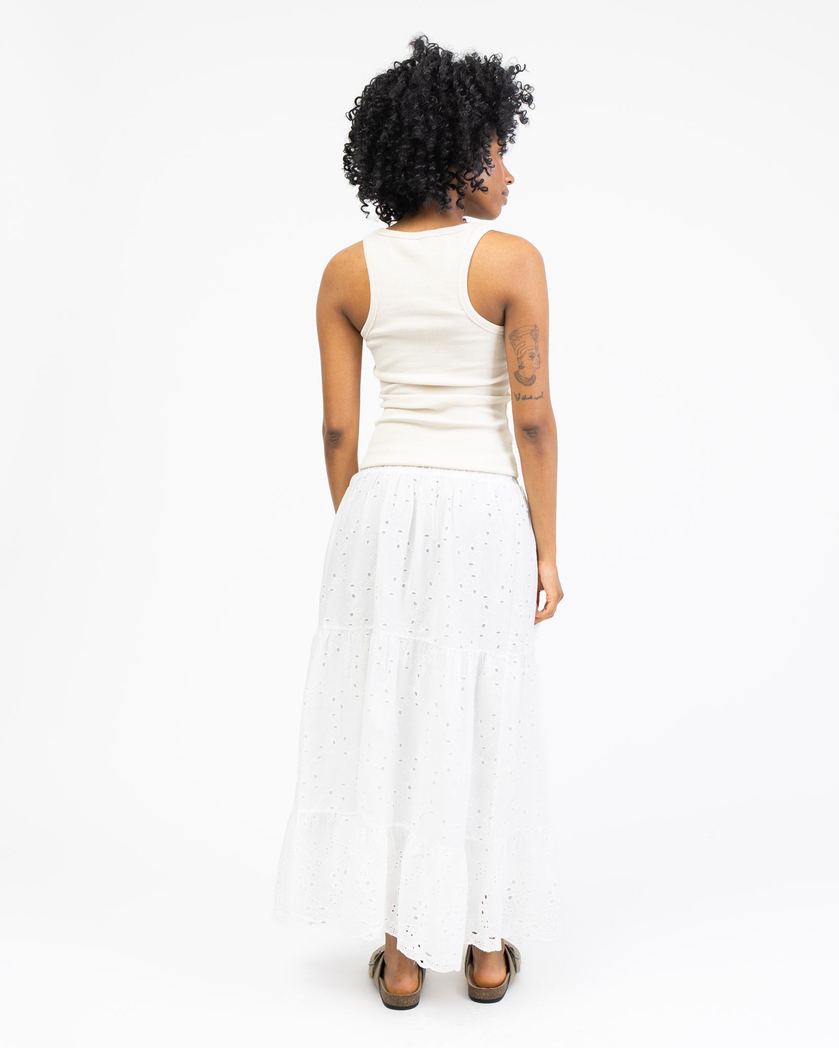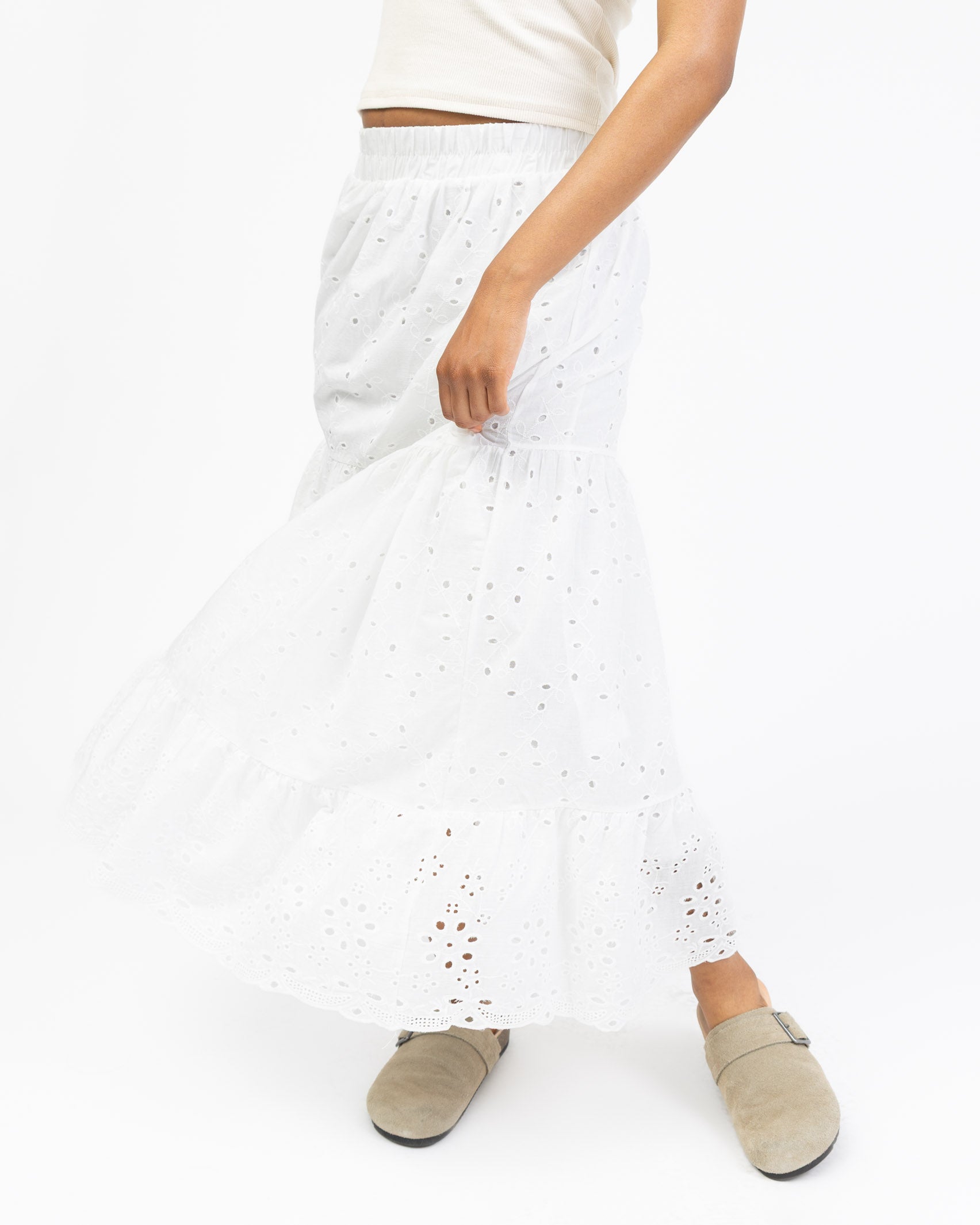 - Fließender gestufter Maxirock mit Lochspitze aus Baumwolle