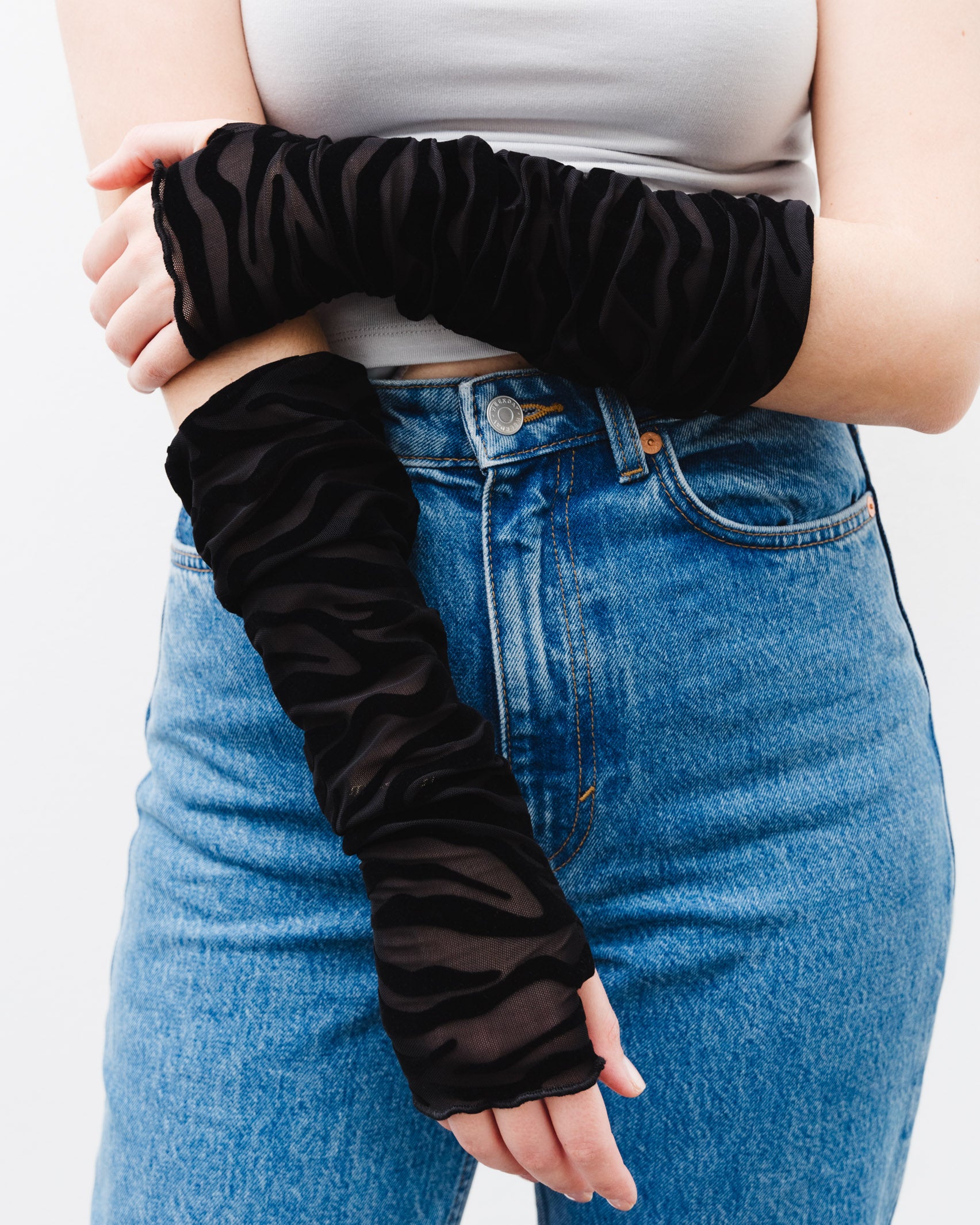 - semi-transparenten Stulpen aus Mesh mit Zebramuster