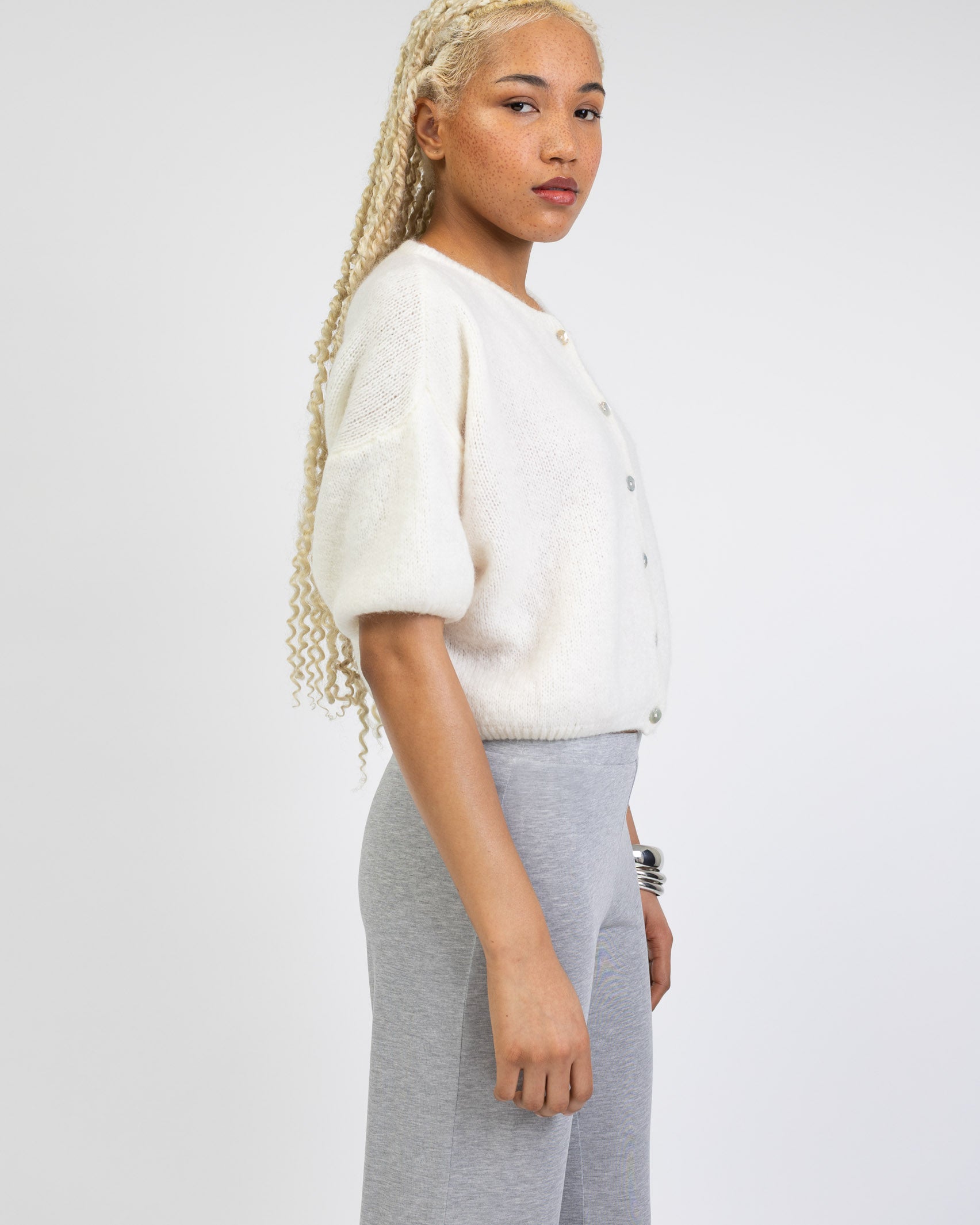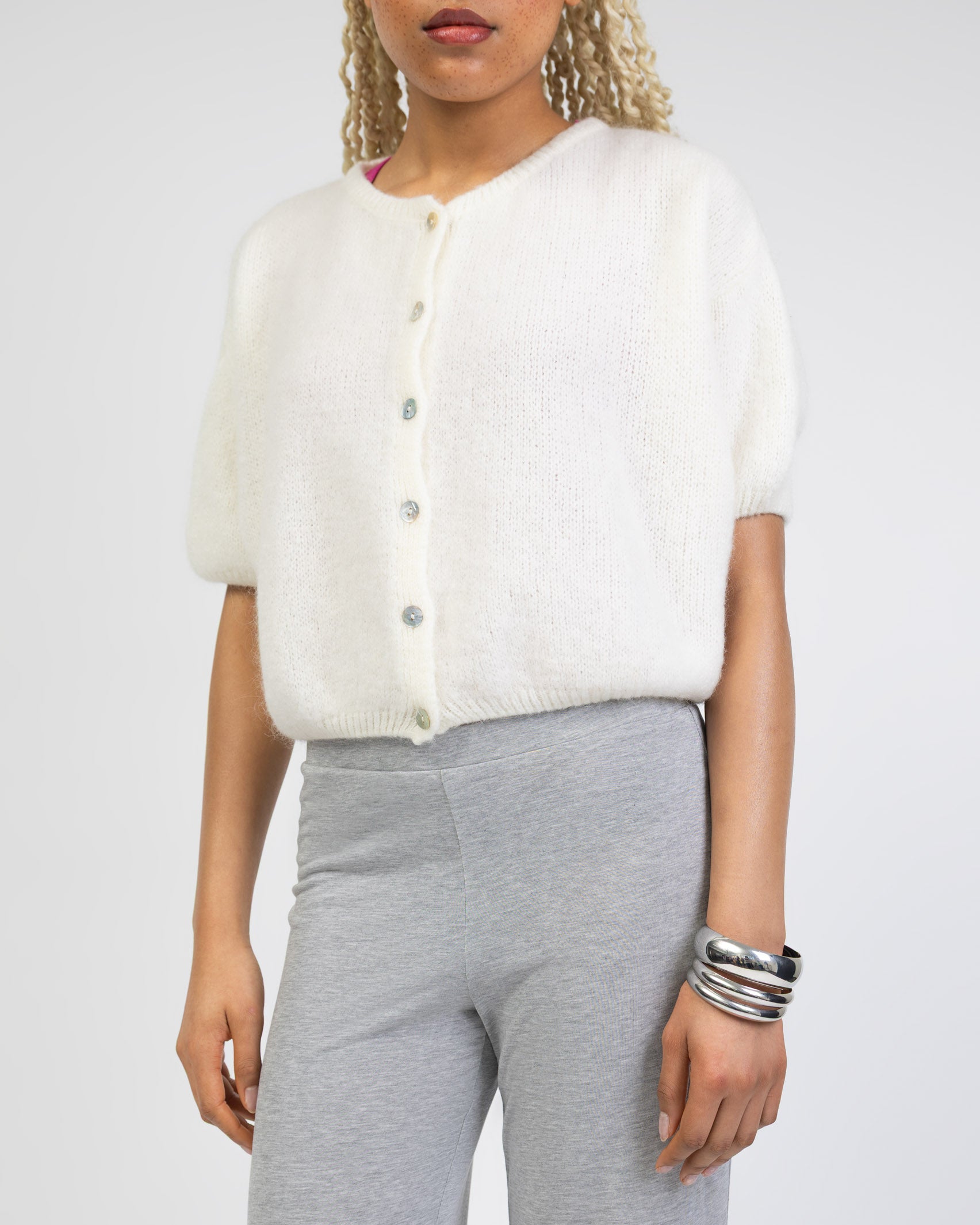 - kurze, weite Strickjacke mit kurzen Ärmeln