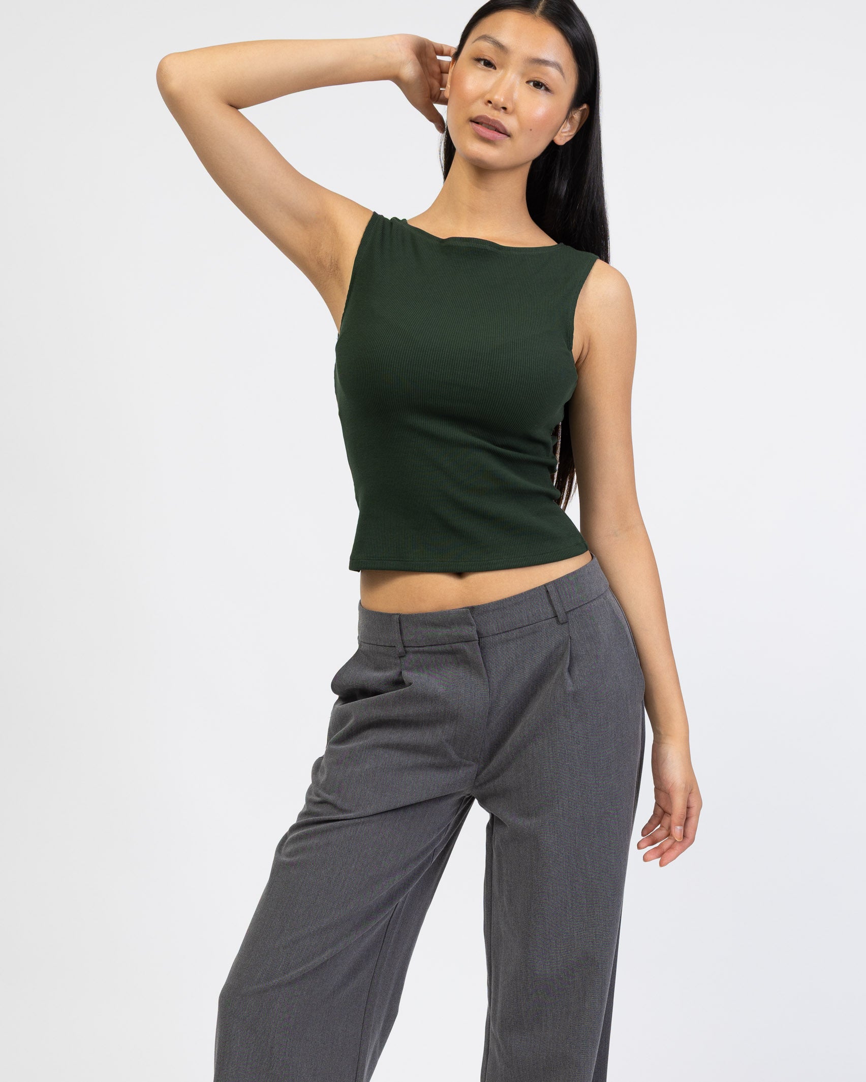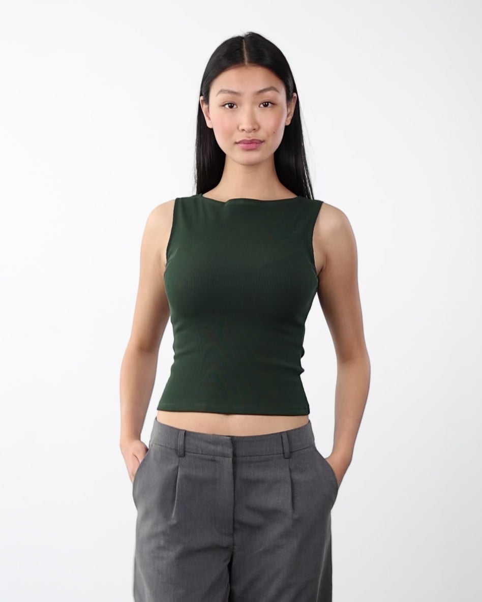 • Geripptes Basic Top mit U-Boot Ausschnitt