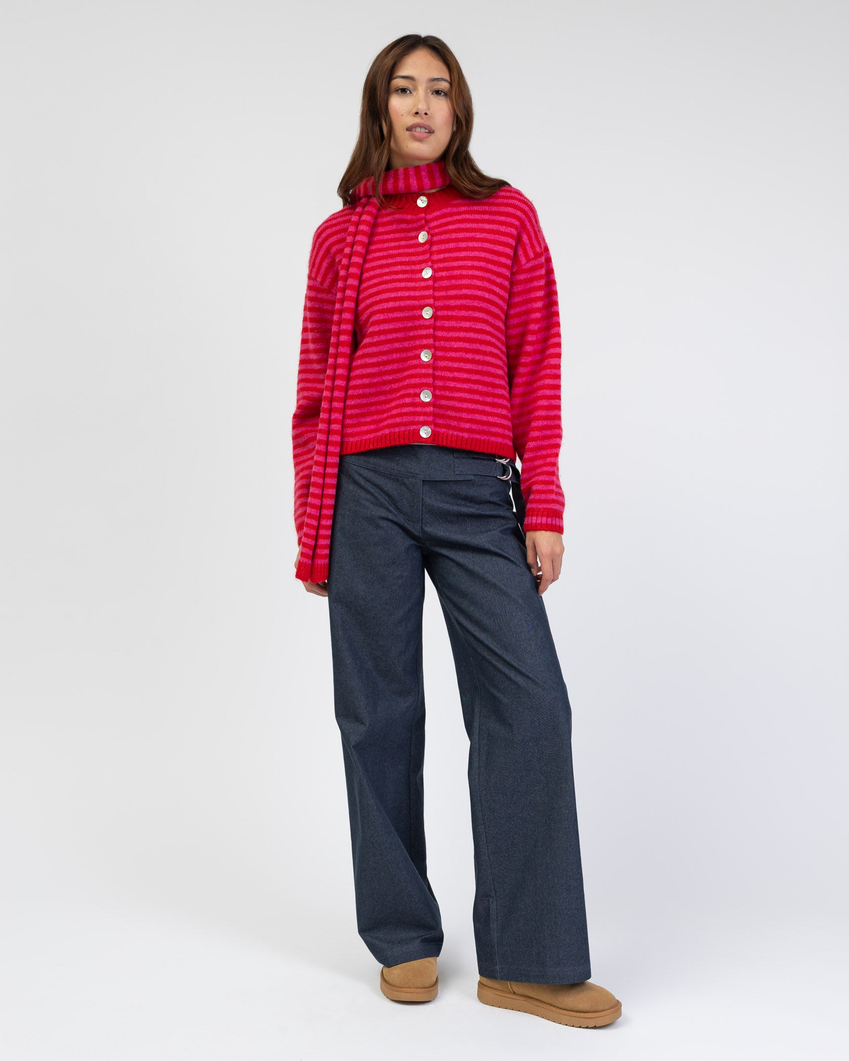 - weiche Strickjacke mit Rundhalsausschnitt mit schmalen Streifen