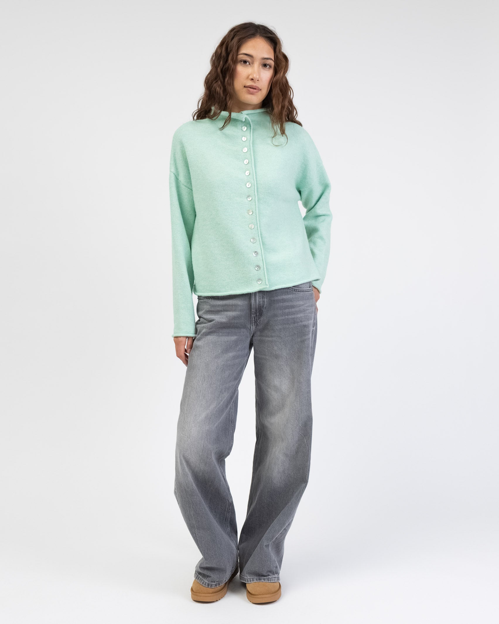 - einfarbige Strickjacke mit lockeren Fit