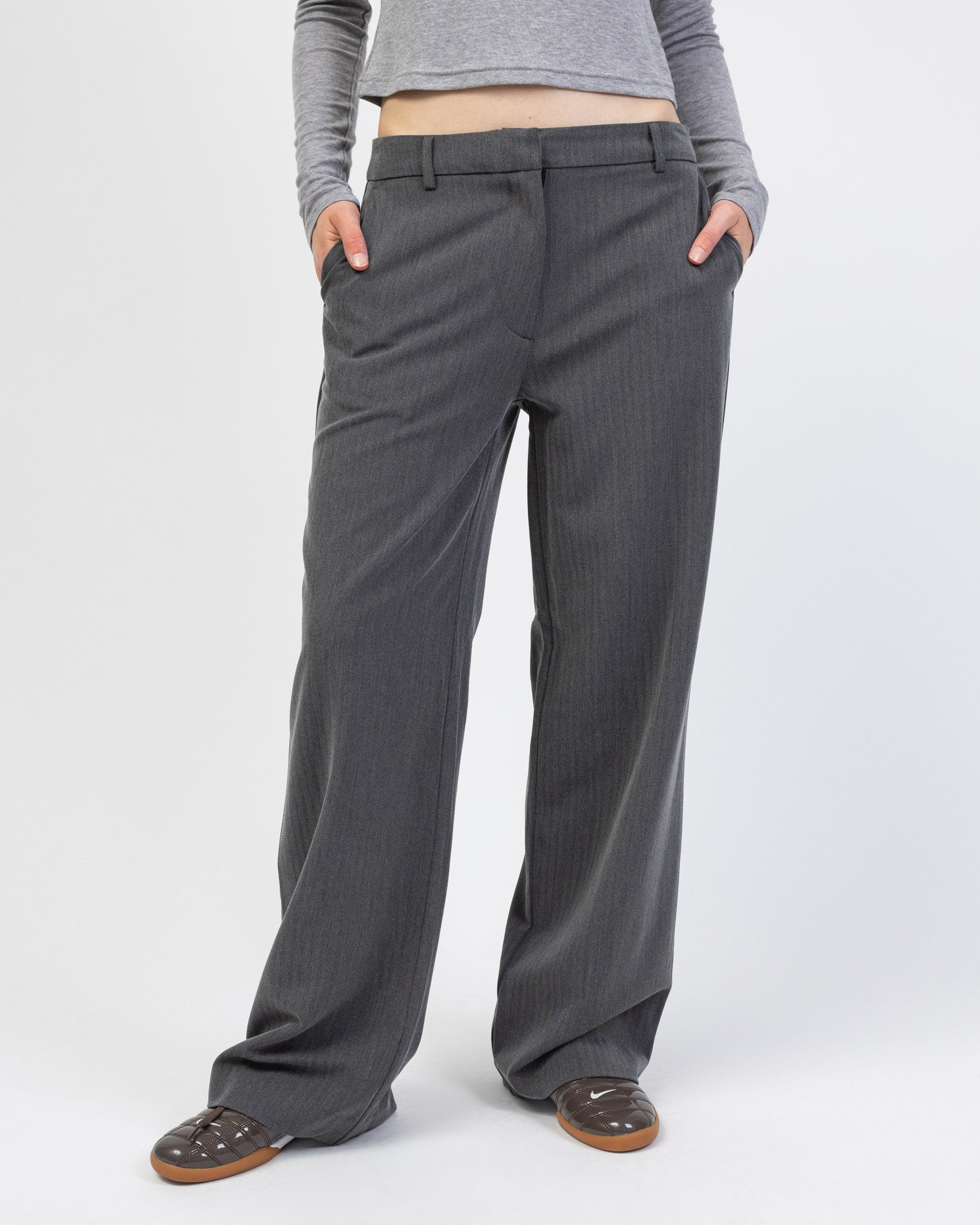 - klassische Hose mit geradem Bein und linienartigem Fischgrätmuster