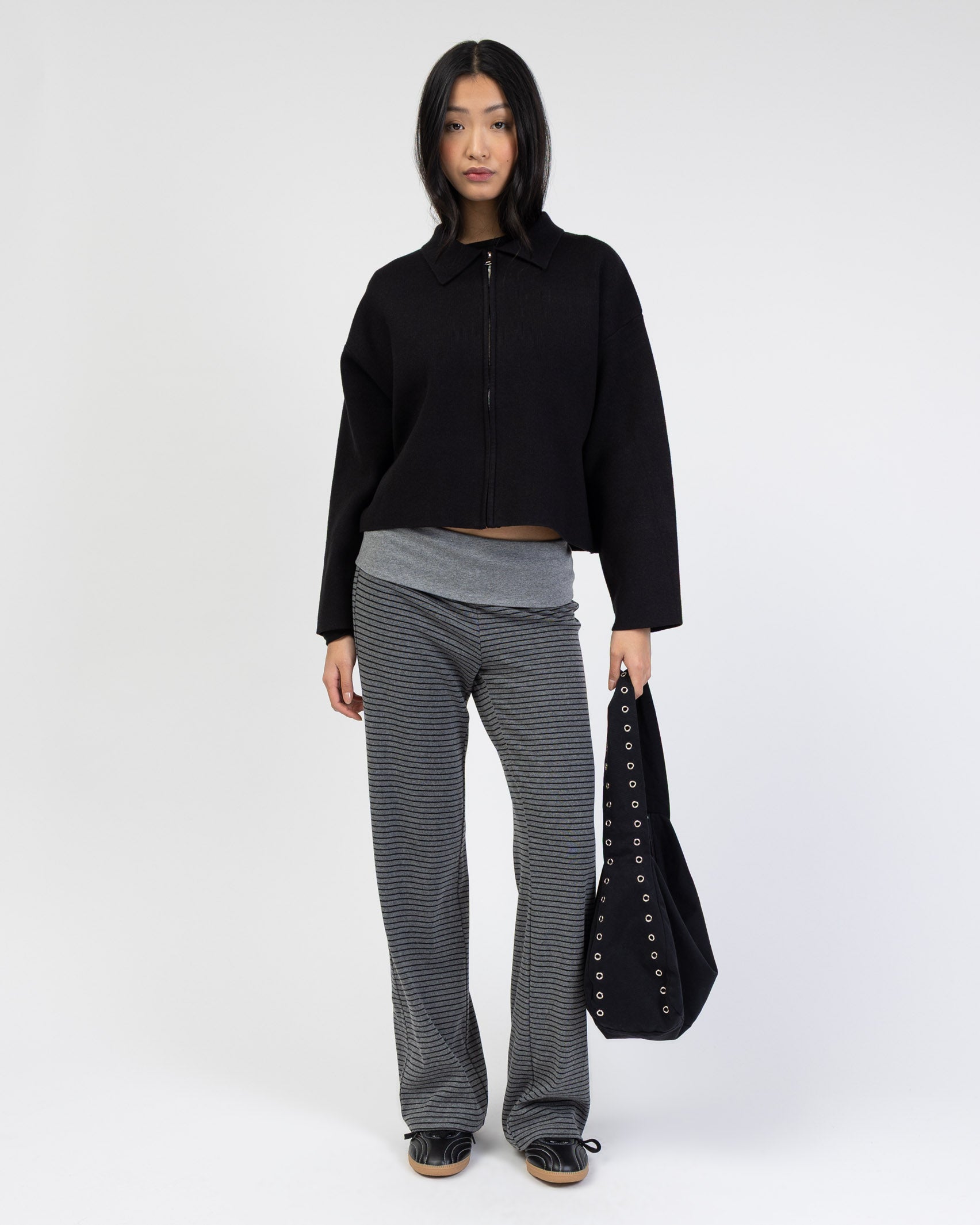 Kastige Strickjacke mit Reißverschluss