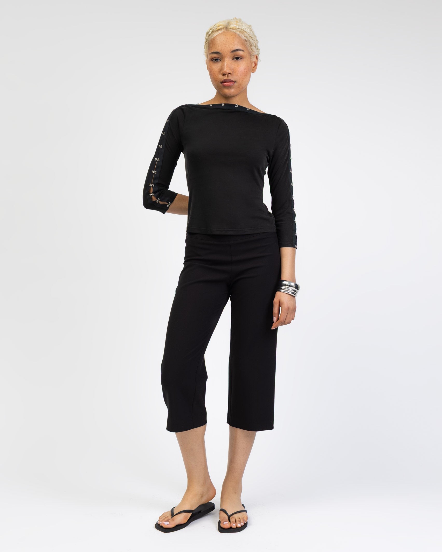 • klassische Capri Hose mit weitem Bein
