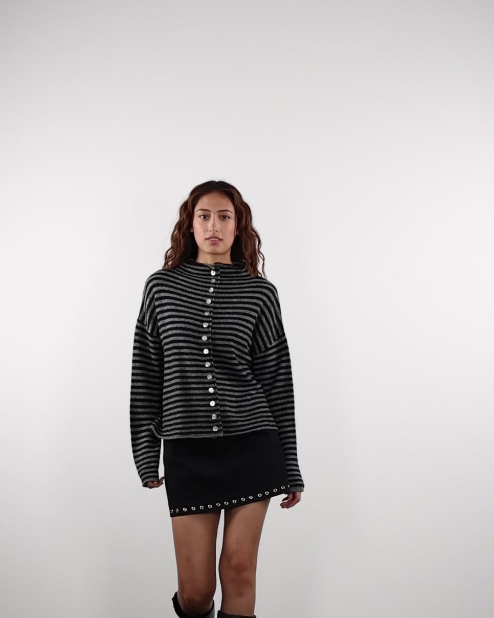 Gestreifte Strickjacke mit Stehkragen