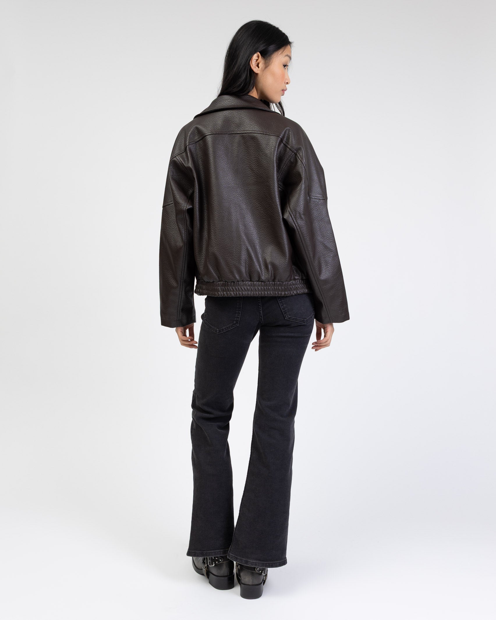 - Kunstlederjacke mit hohem Kragen und asymmetrischem Revers