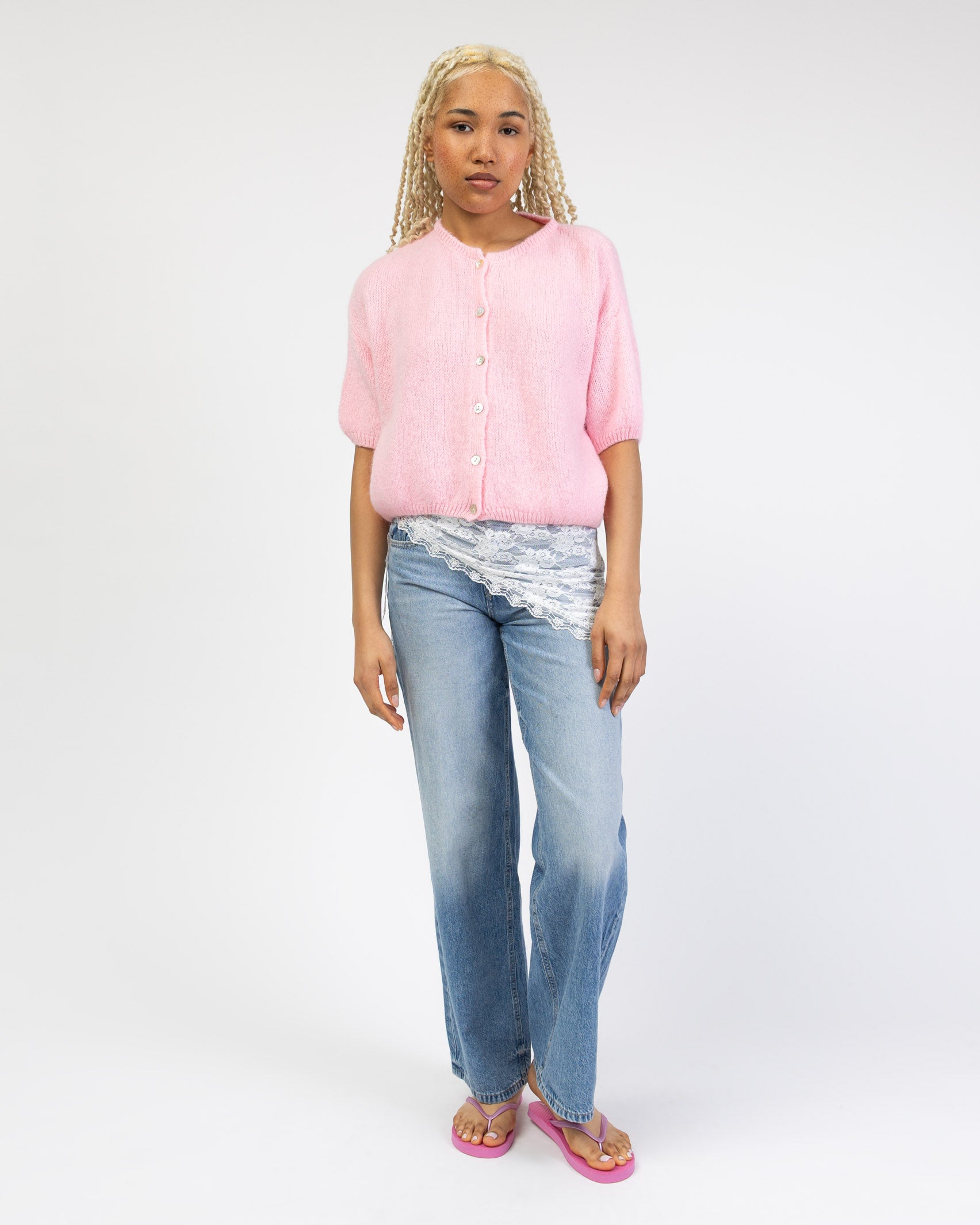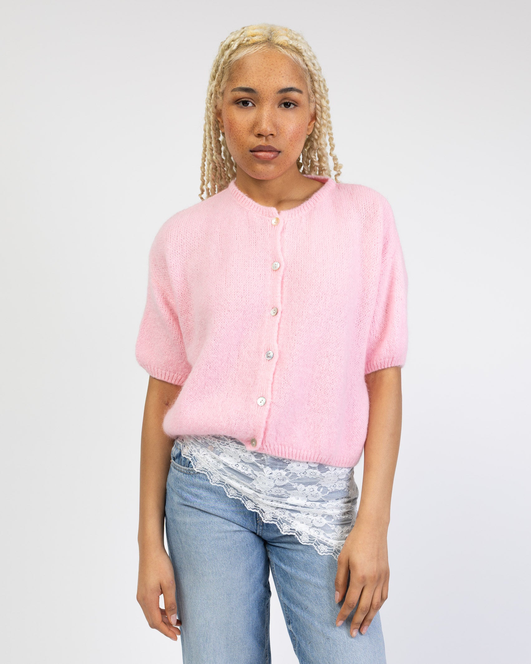 - kurze, weite Strickjacke mit kurzen Ärmeln