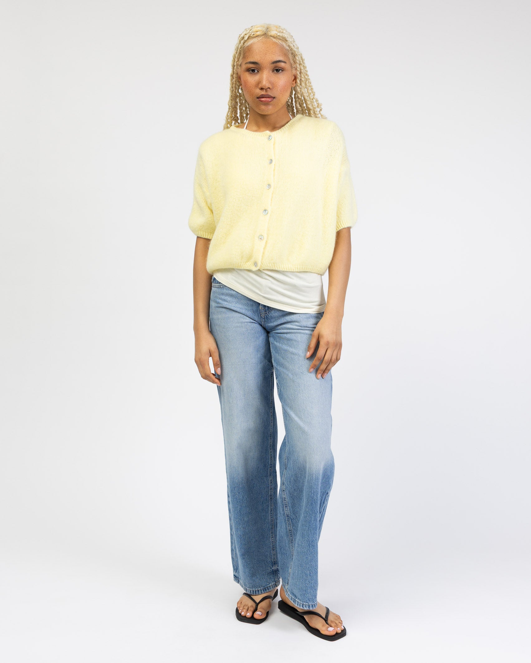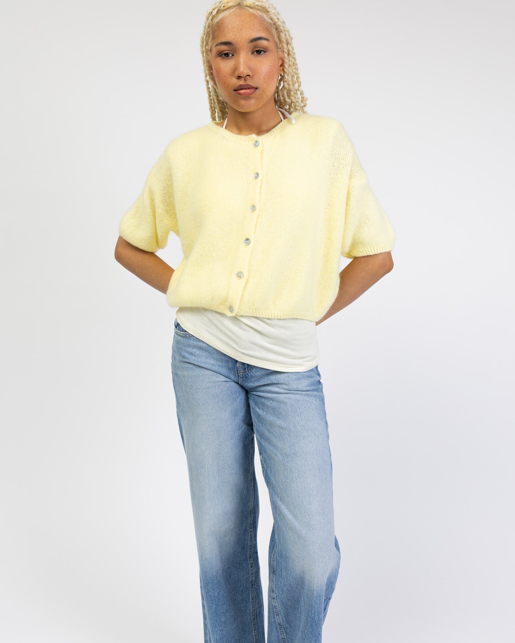 - kurze, weite Strickjacke mit kurzen Ärmeln