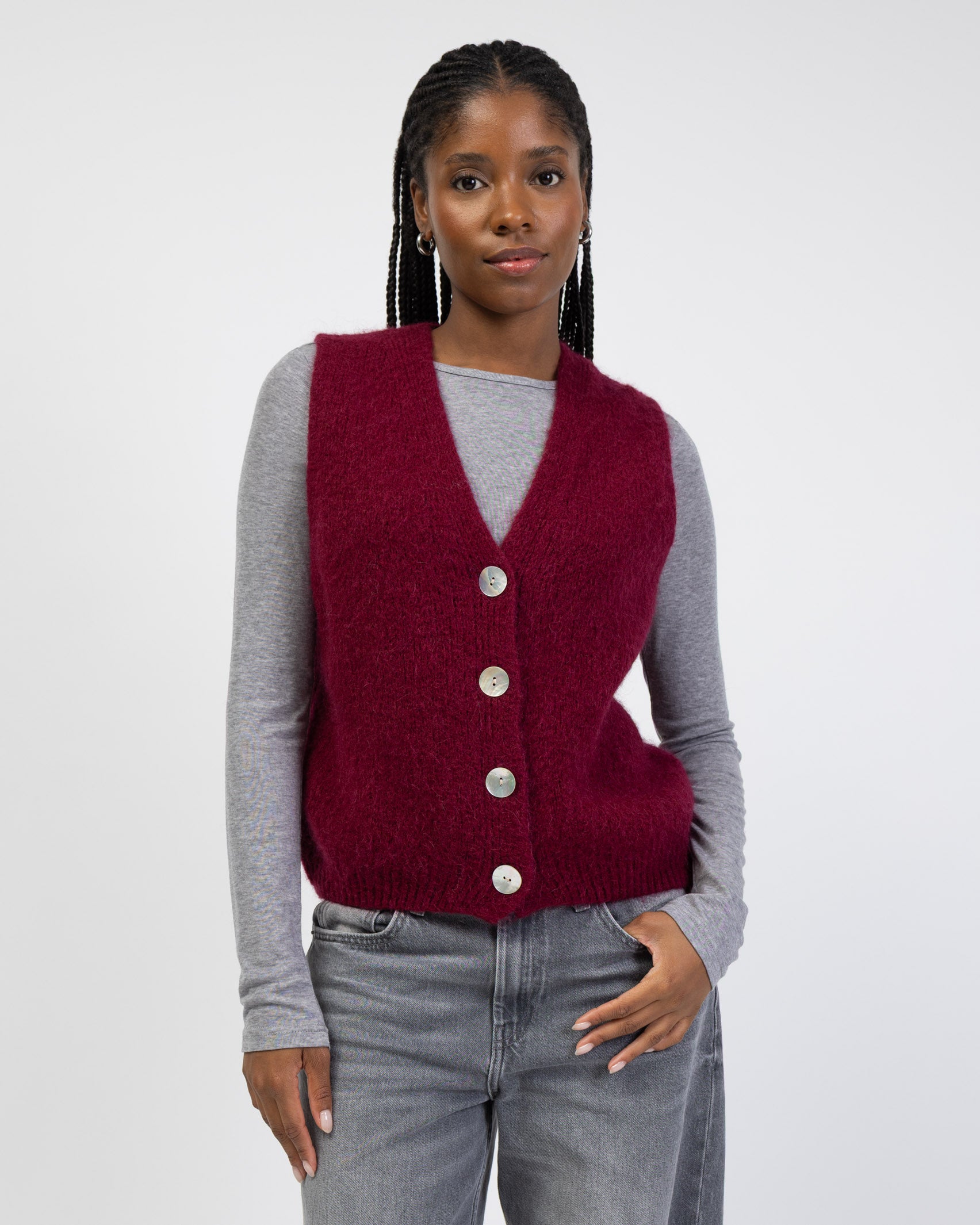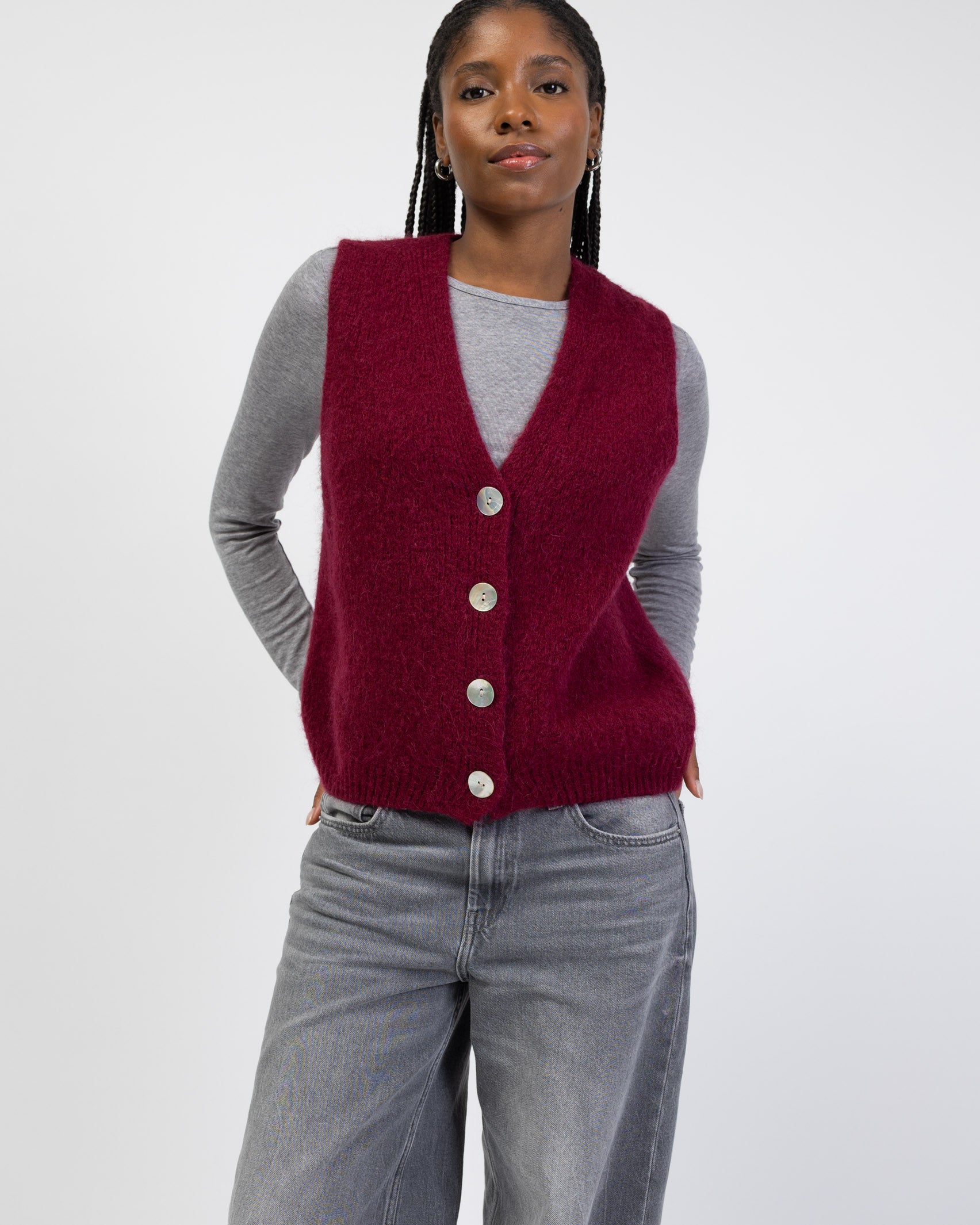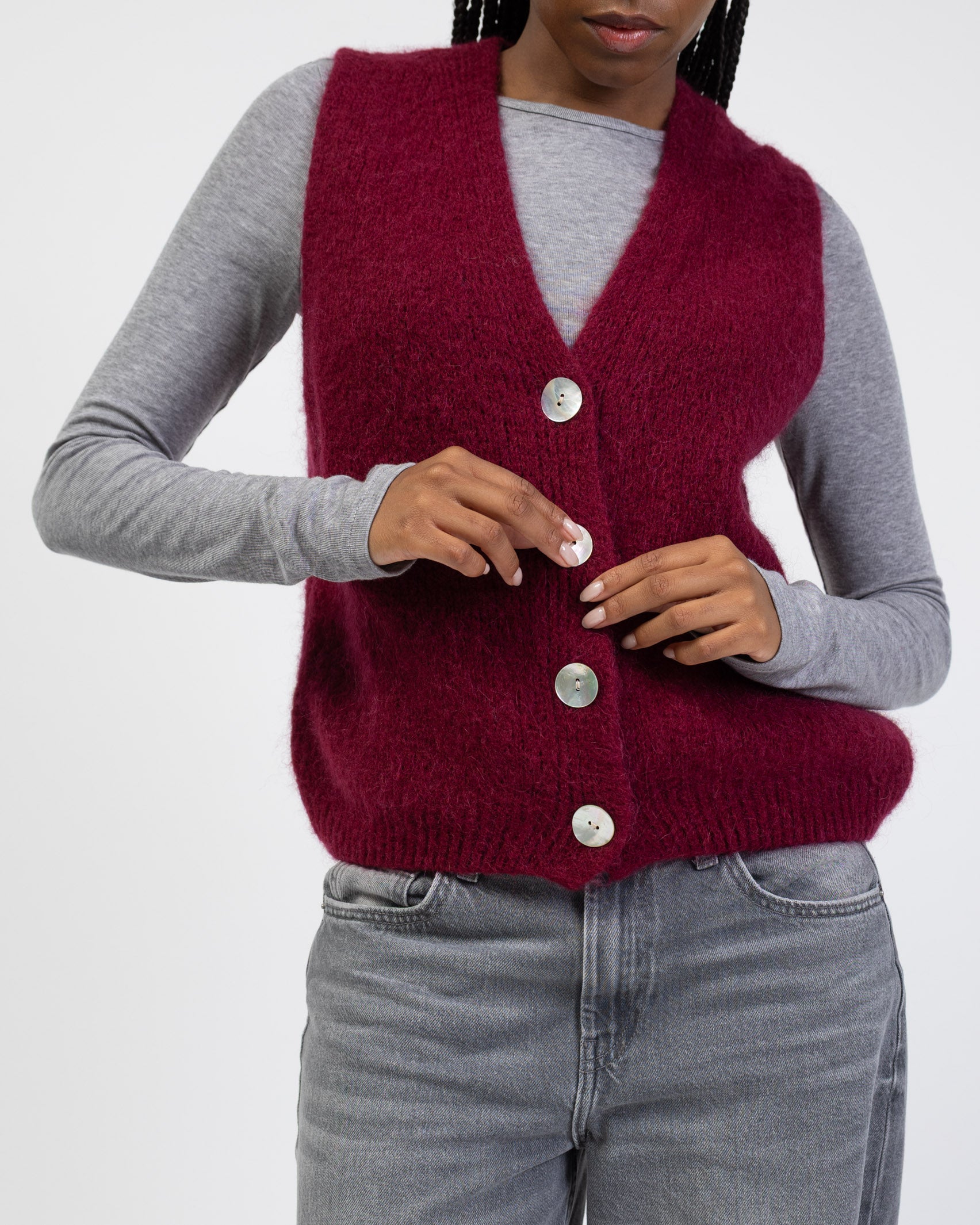 - Weicher Pullunder mit Perlmutt Knöpfen