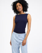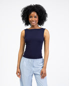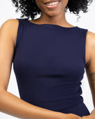 • Geripptes Basic Top mit U-Boot Ausschnitt