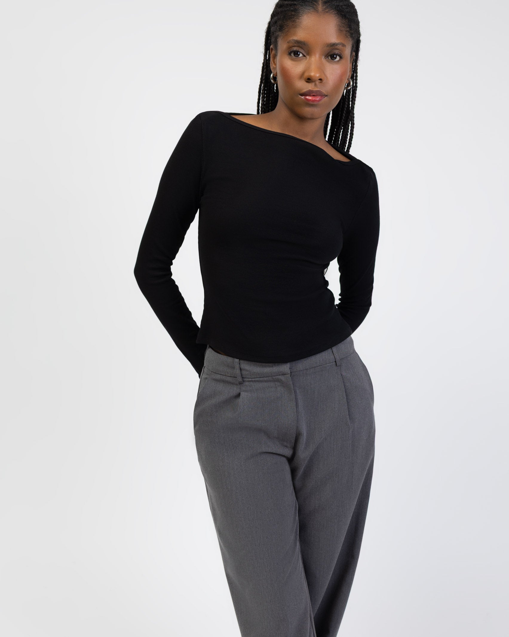 • Weiches Langarmshirt mit U-Boot Ausschnitt