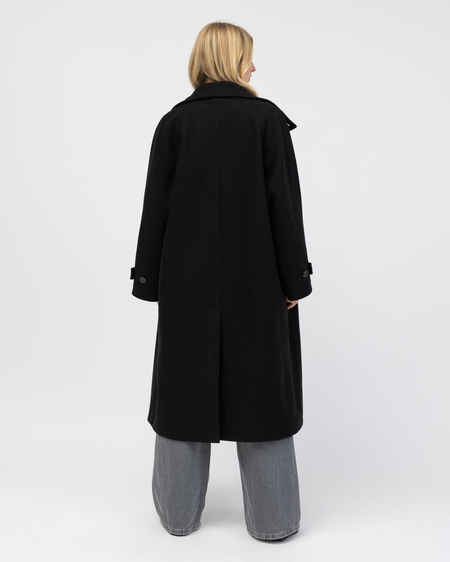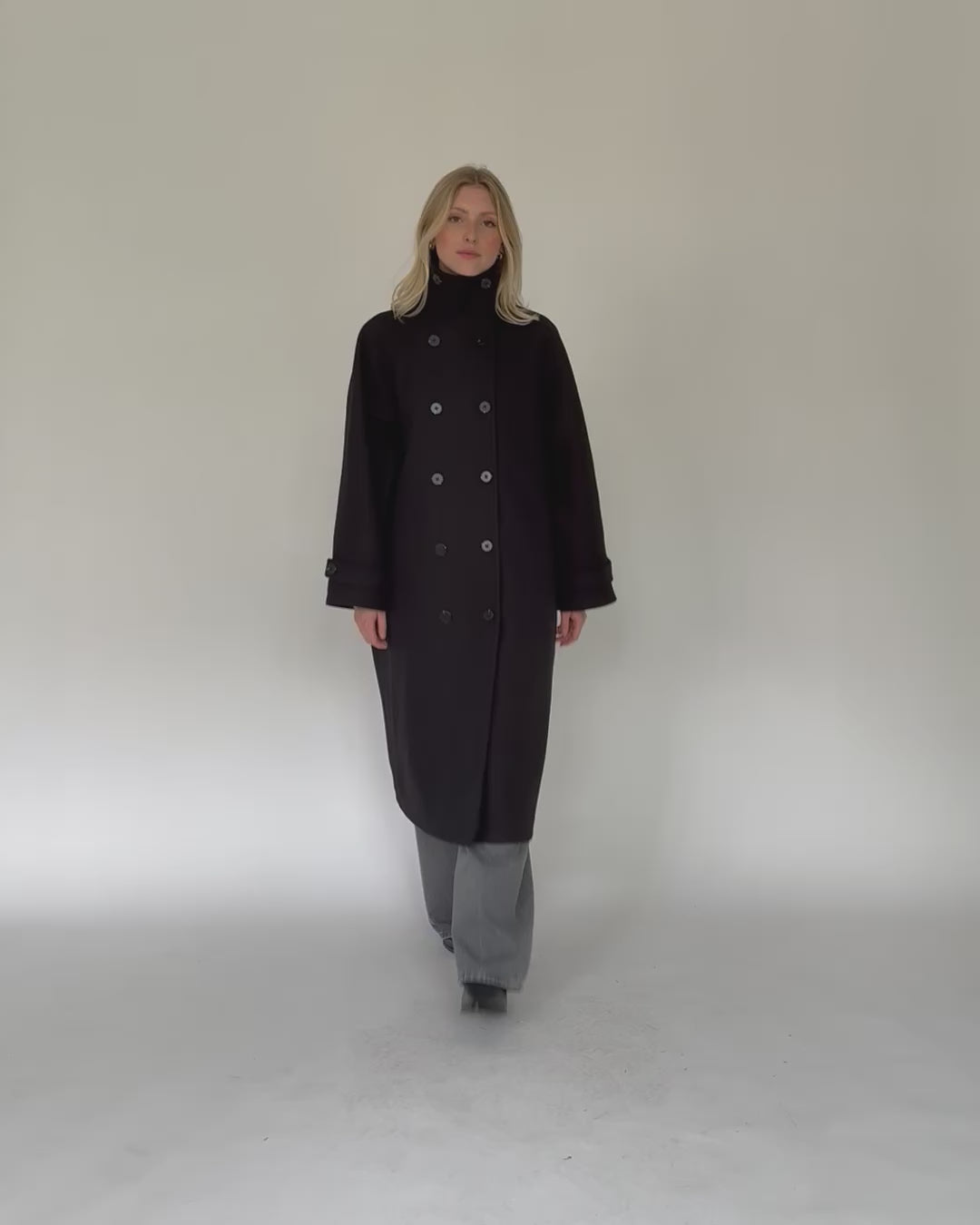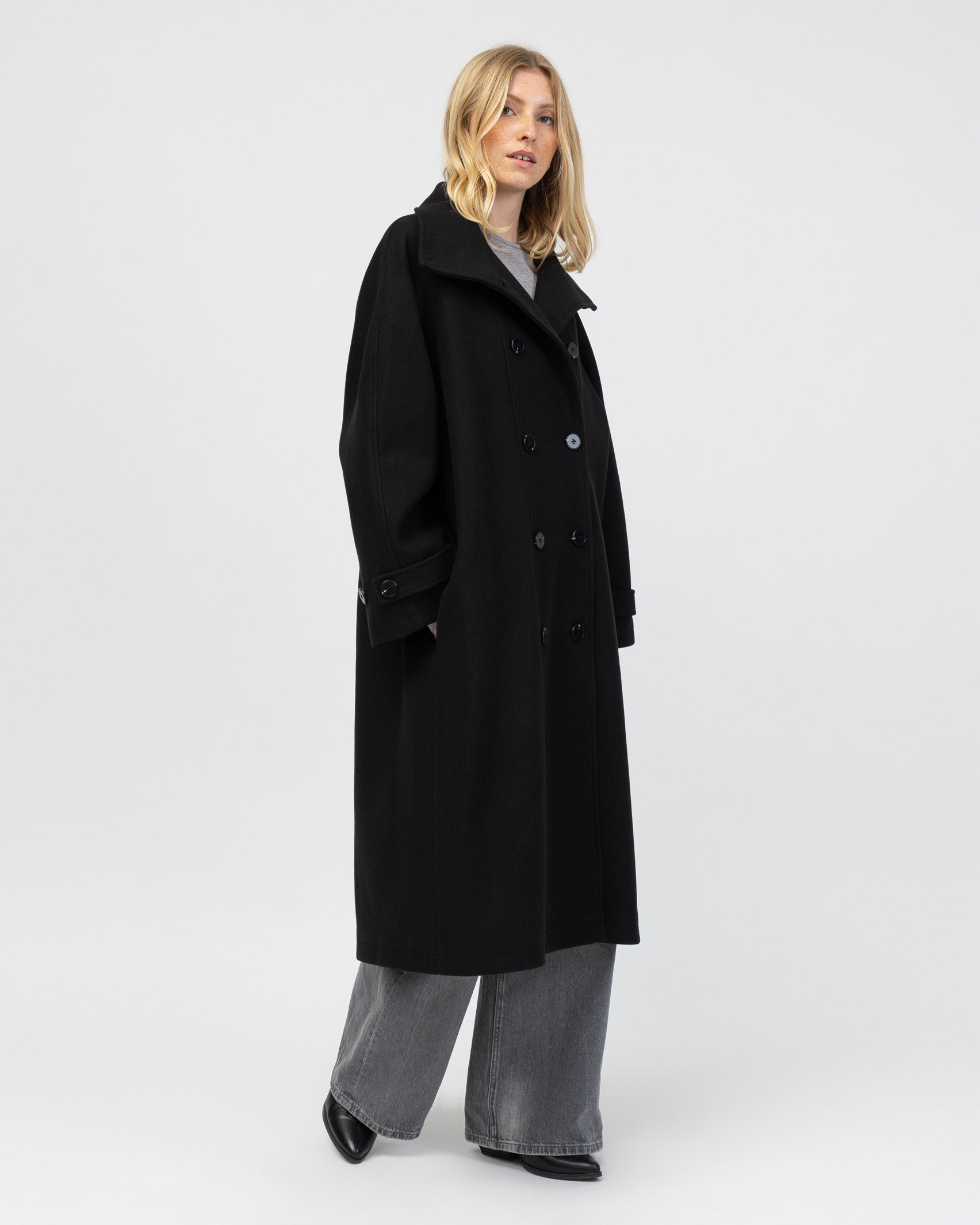 Langer Mantel mit hohem Kragen