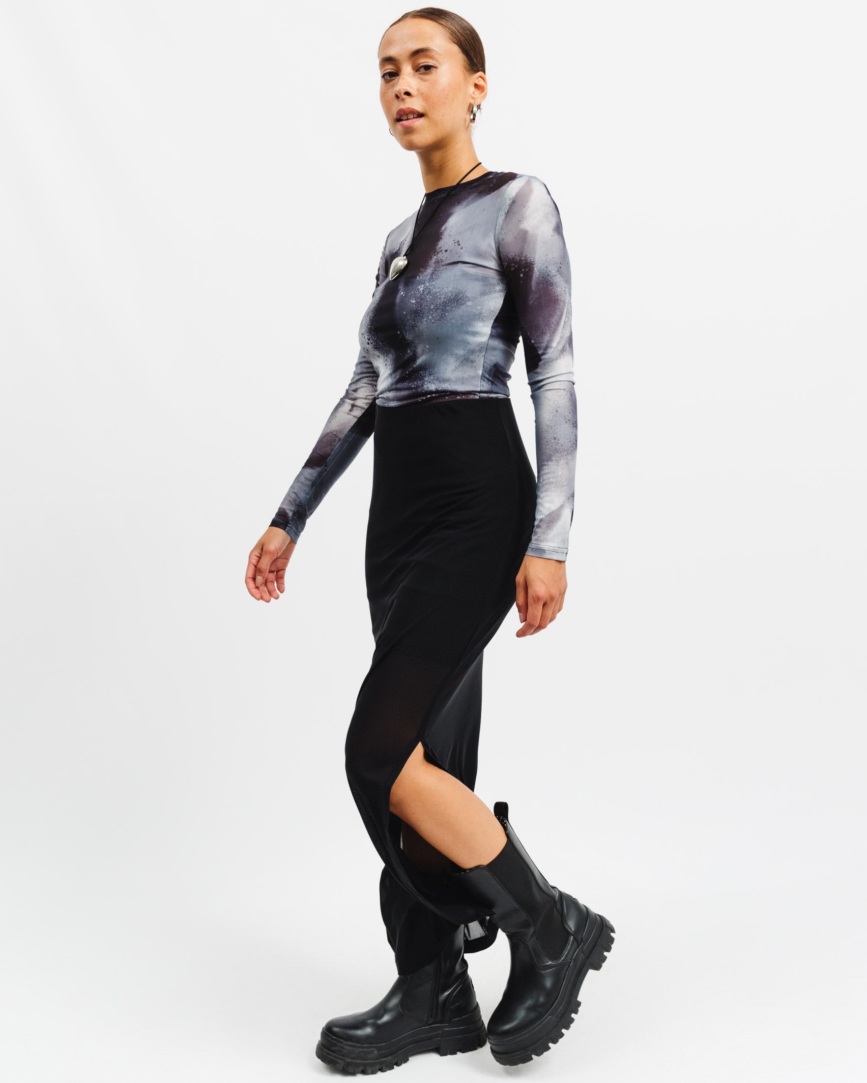 • langer Mesh Rock mit blickdichtem Unterrock in Mini-Länge