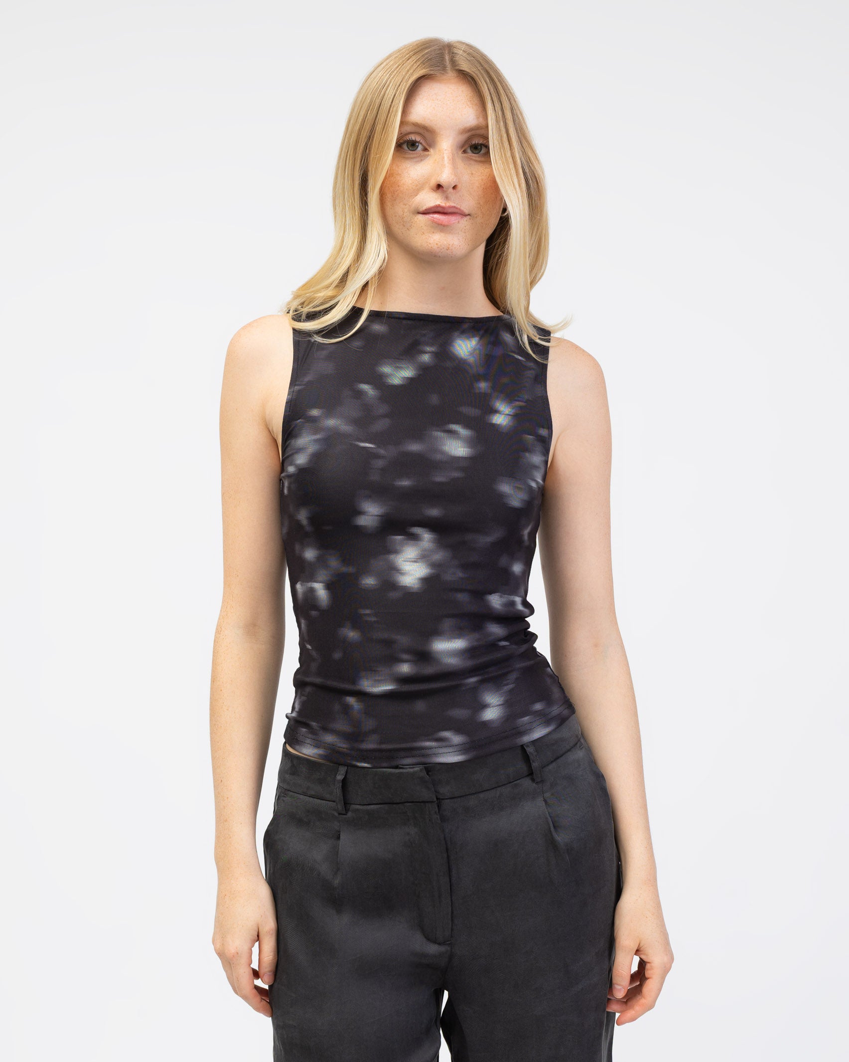 - semi-transparentes Mesh Top mit abstrakten Muster