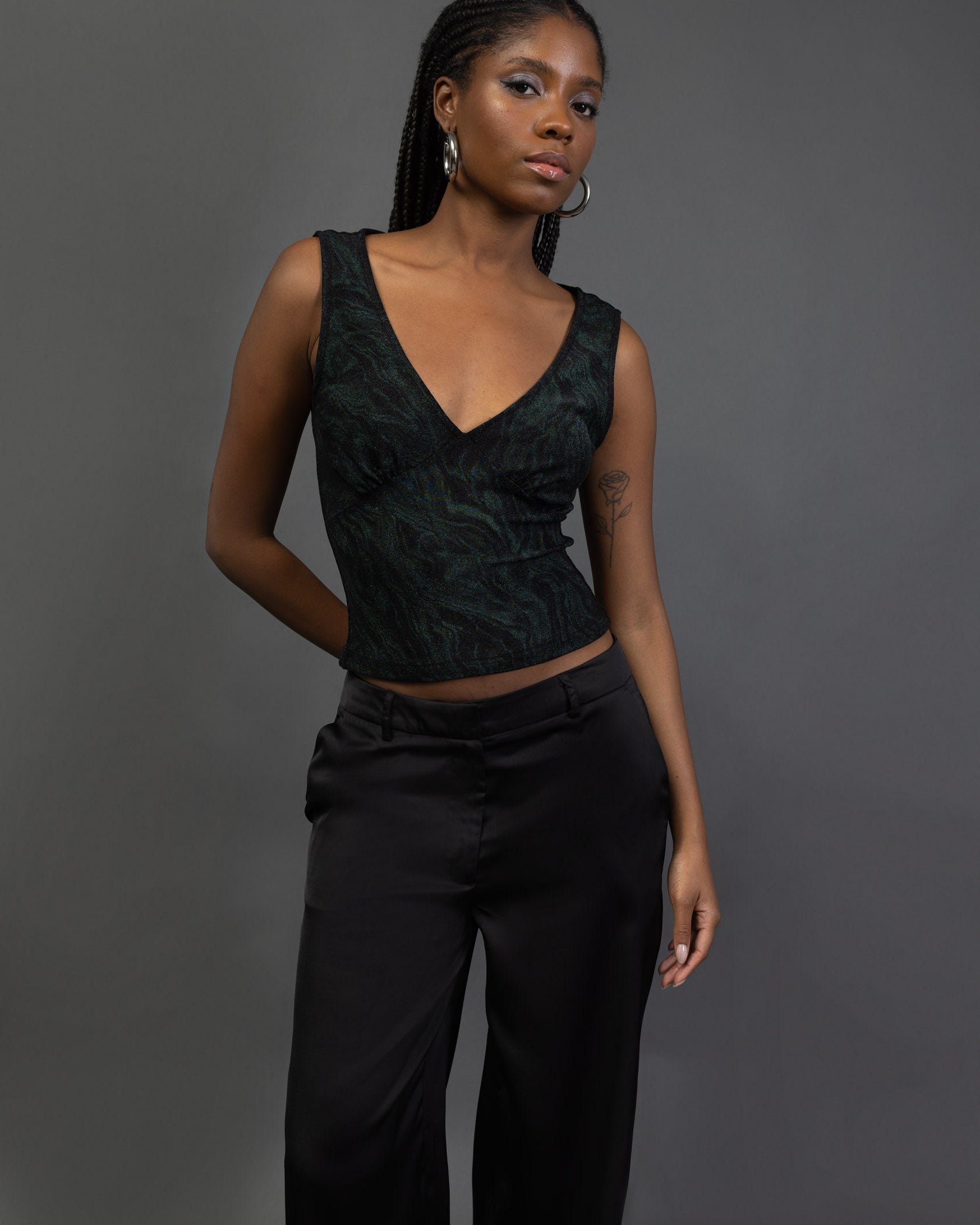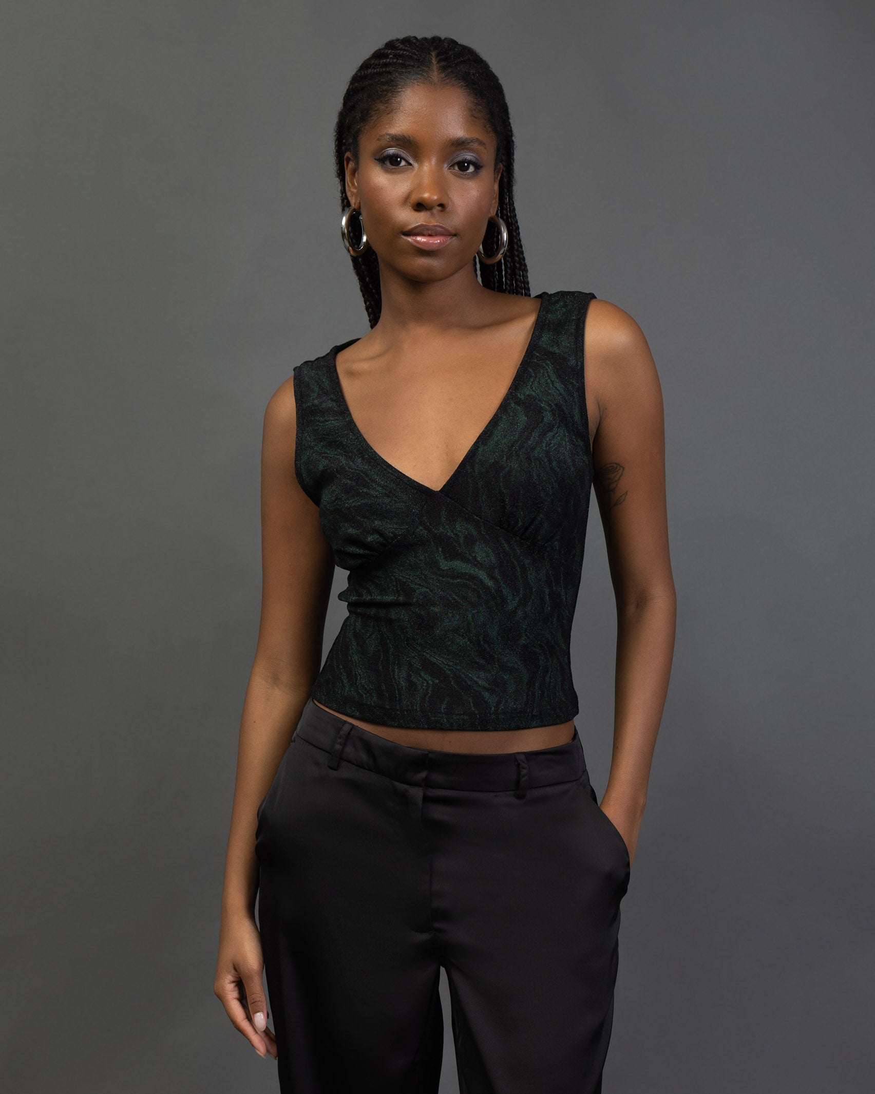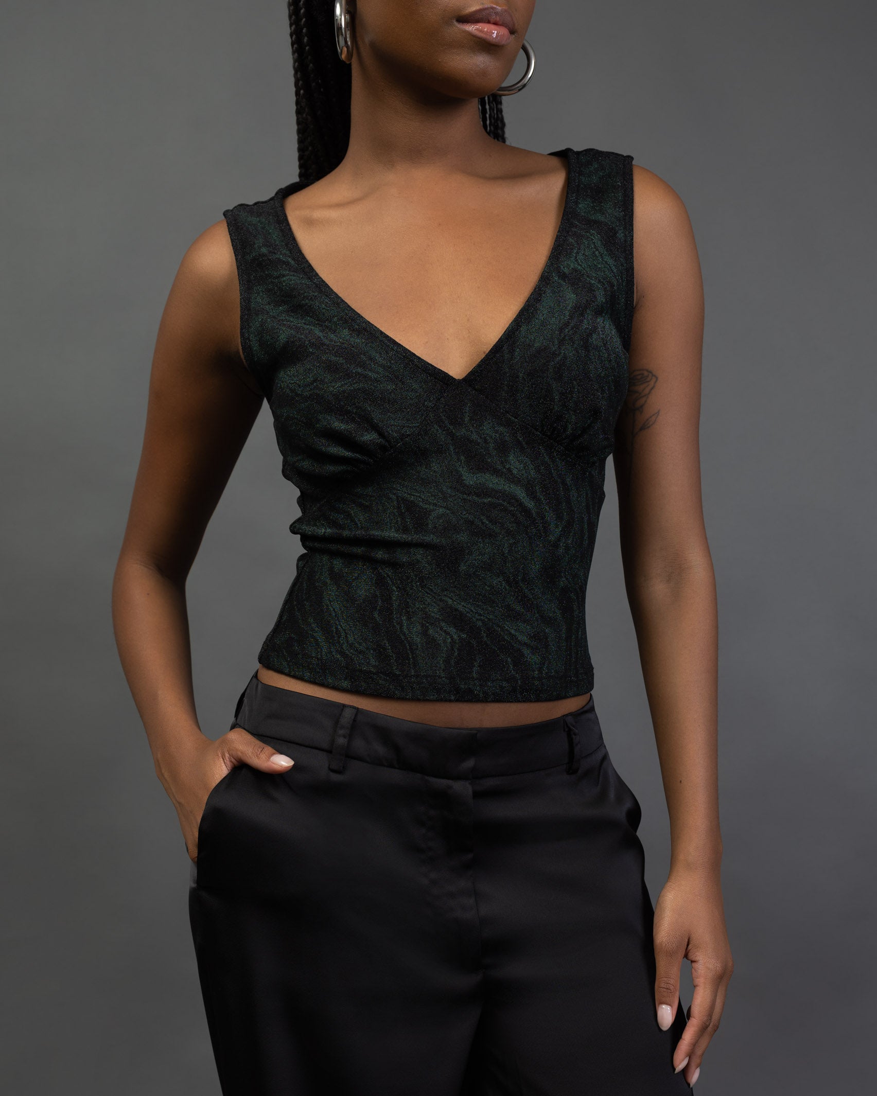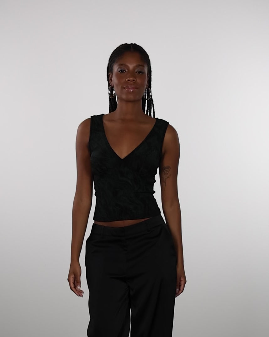 - Top mit tiefem V-Ausschnitt mit marmoriertem Glitzermuster